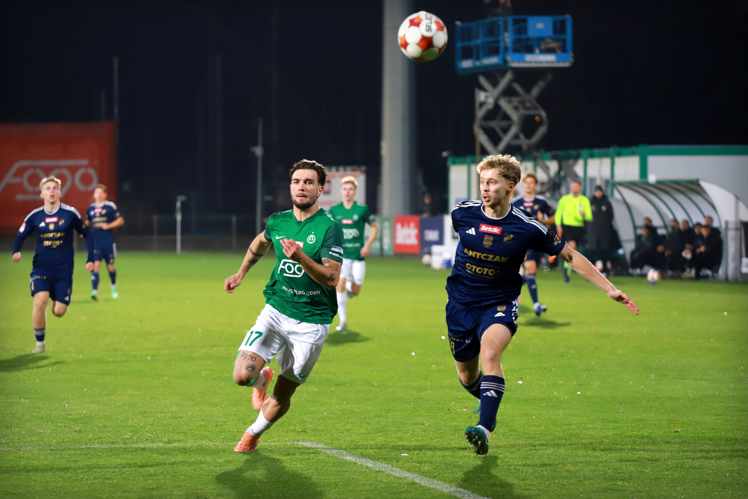 Mogłoby się wydawać, że Zieloni, odwracając wynik z 0:2 na 3:2, będą usatysfakcjonowani i do końca meczu skupią się na obronie prowadzenia. Nic bardziej mylnego — nawet po objęciu prowadzenia atakowali z taką pasją, jakby wciąż musieli gonić wynik. Ich determinacja przyniosła efekt w doliczonym czasie gry. W 92. minucie piłkę w narożniku boiska wywalczył Stanek, zagrał do Stefaniaka, który wrzucił ją w pole karne, tworząc spore zamieszanie. Tam najlepiej odnalazł się Waluś, przejął futbolówkę i oddał precyzyjny, plasowany strzał lewą nogą w samo okienko bramki pilnowanej przez Macieja Krakowiaka, ustalając wynik meczu na 4:2.